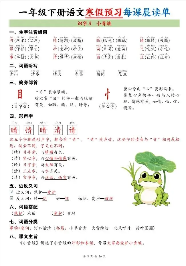 今天给大家整理了26春新一下语文寒假预习每课晨读单36页,转发给朋友或班级群,受益更多人,帮助孩子学习!