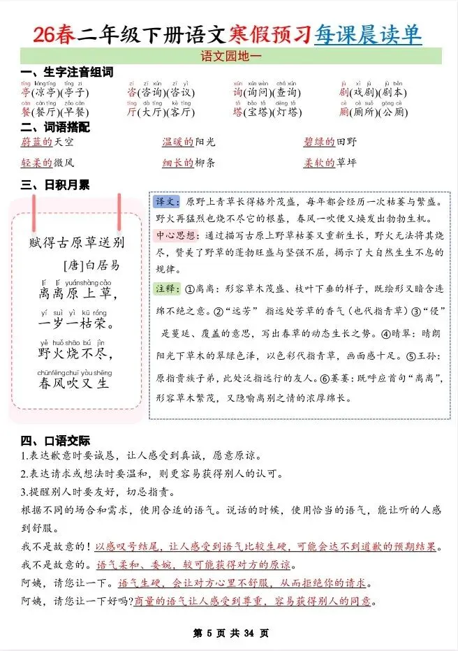 ✅「 二年级(下)语文 26版新寒假预习每课晨读单.pdf」链接:https://pan.quark.cn/s/947e62705641