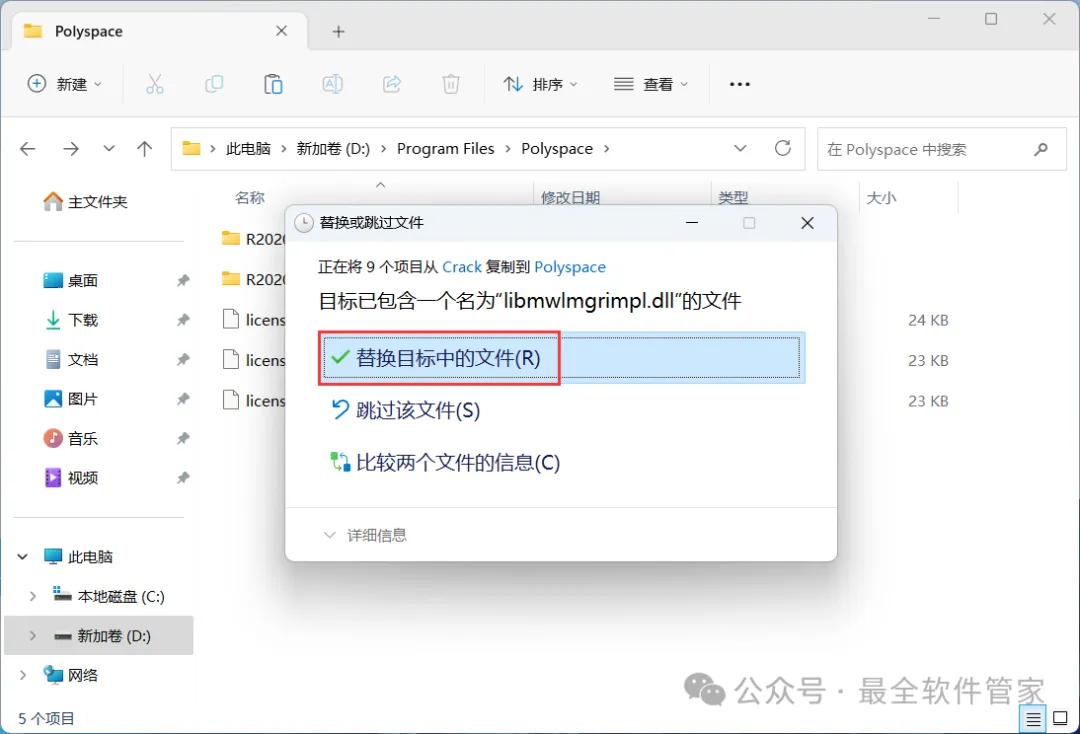 20、点击【替换目标中的文件】