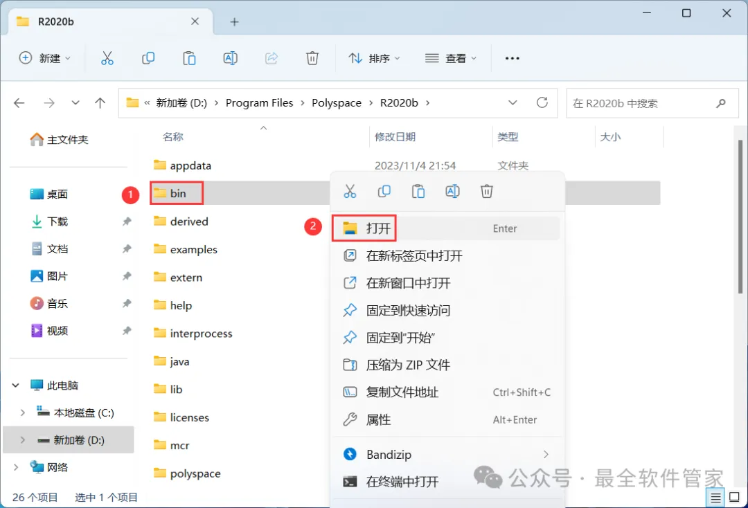 21、找到【R2020b】文件夹,右键【打开】它