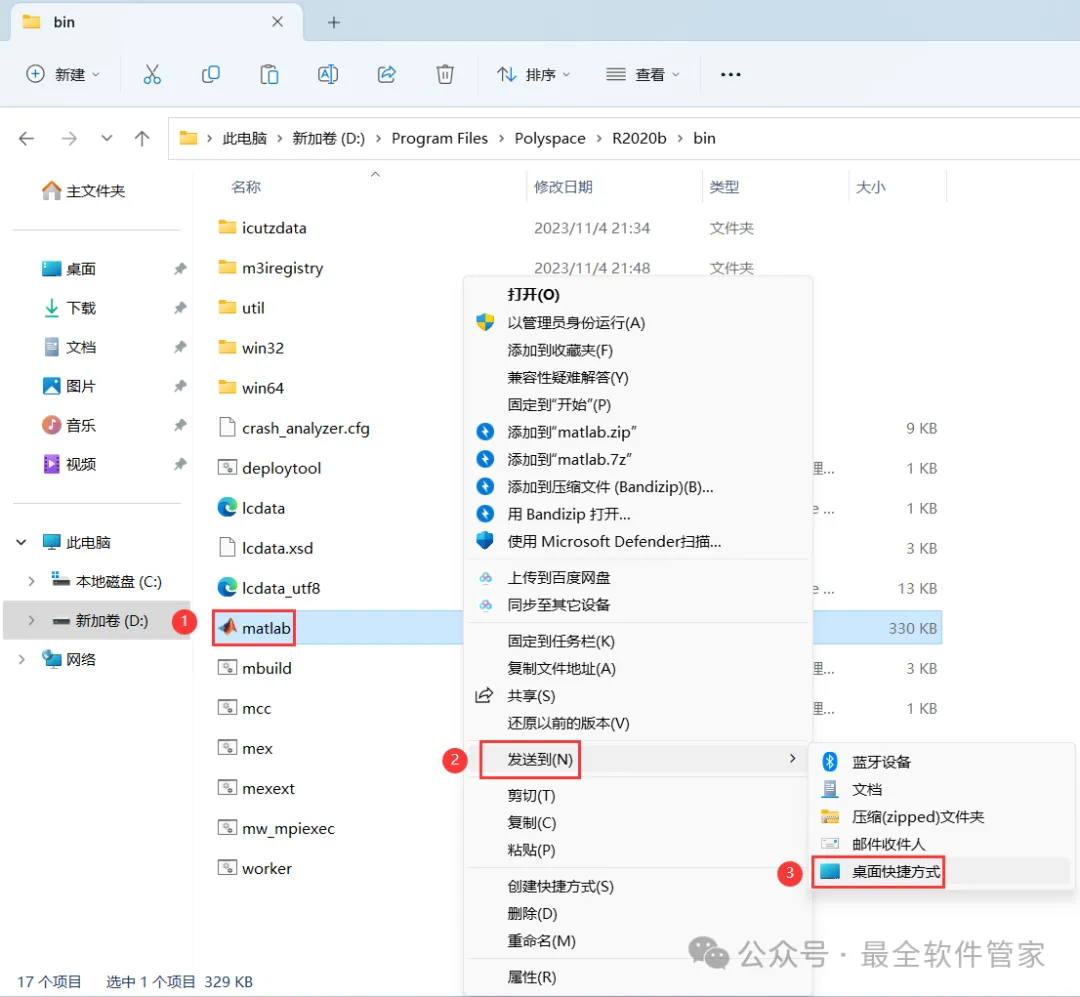 23、找到【matlab】程序,右键依次点击【显示更多选项】、【发送到】、【桌面快捷方式】,完成软件桌面快捷方式的创建