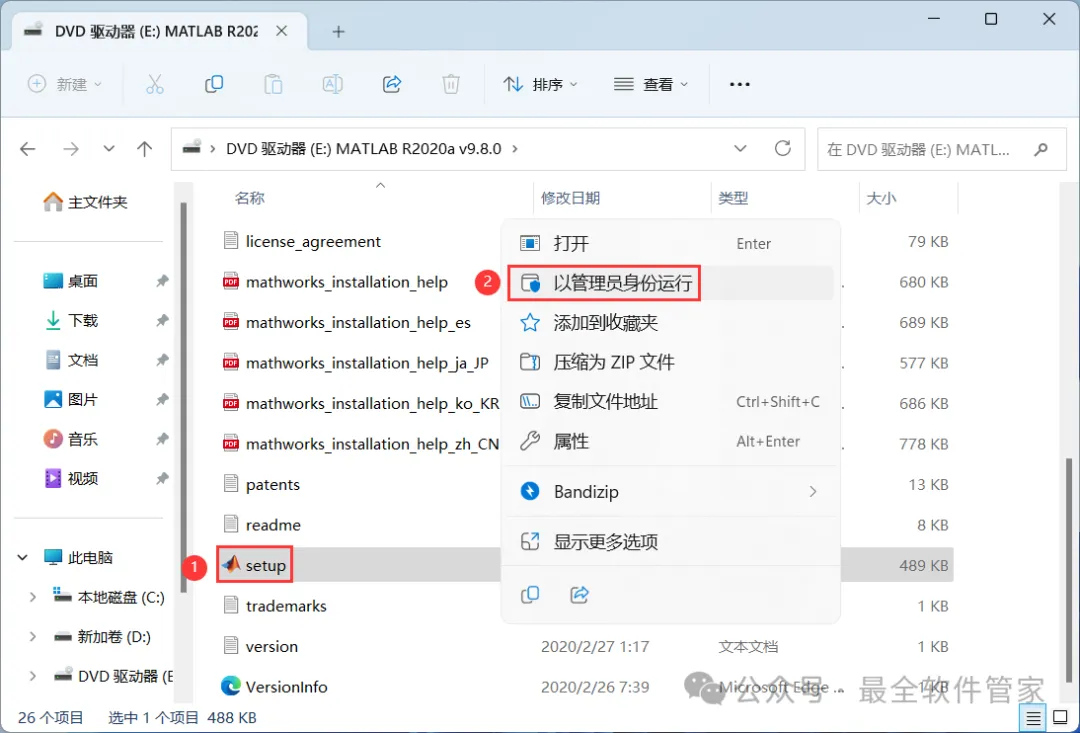 4、找到【setup】应用程序,右键选择【以管理员身份运行】它
