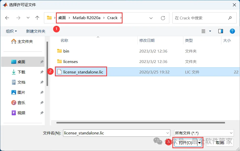 9、找到并选中安装包Crack文件夹下的【license_standalone.lic】,再点击【打开】