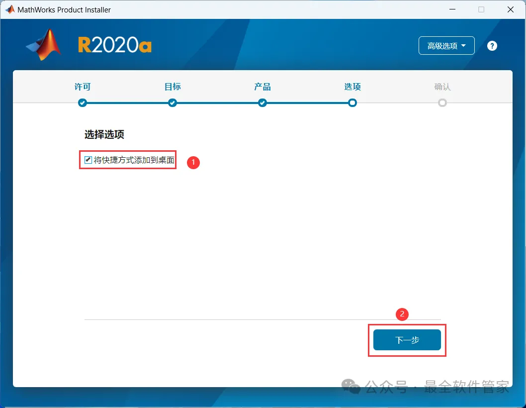 12、勾选【将快捷方式添加到桌面】,再点击【下一步】