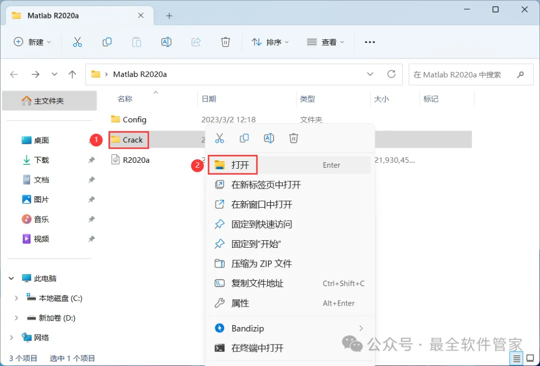 16、回到Matlab R2020a文件夹,找到【Crack】文件夹,右键【打开】它