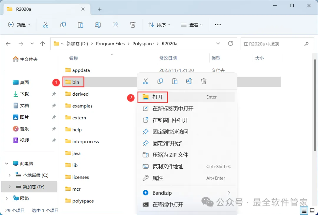 20、找到【bin】文件夹,右键【打开】它