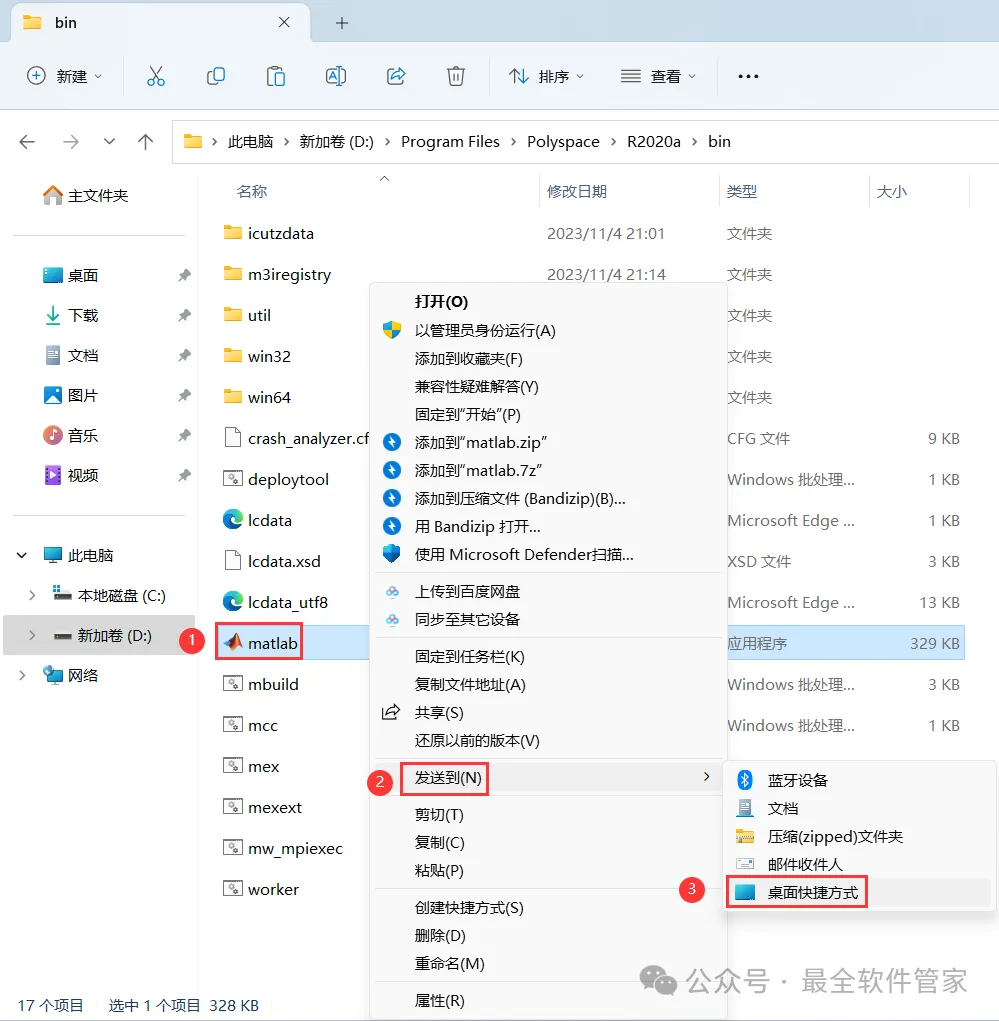 21、找到【matlab】程序,右键依次点击【显示更多选项】、【发送到】、【桌面快捷方式】,完成软件桌面快捷方式的创建