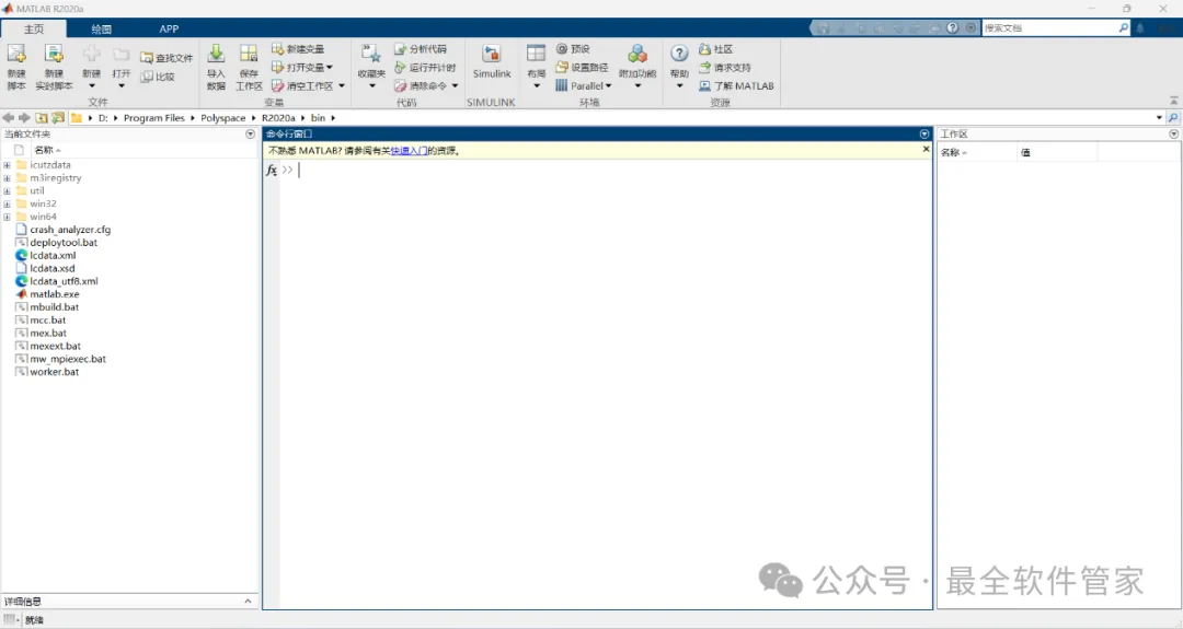 Matlab R2020a是一款基于数学计算和编程语言的高级技术计算软件,由美国MathWorks公司开发。它的主要特点是可以进行数学运算、数据分析、可视化以及算法开发等多种功能。由于其强大的数学计算能力和开放式的编程语言,MATLAB被广泛应用于各个领域,包括科学研究、工程设计、金融分析、图像处理等。