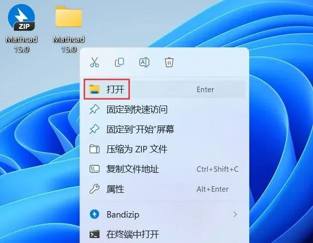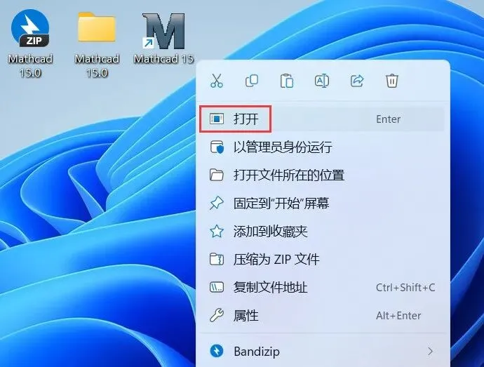 25、回到桌面,右键桌面上的【Mathcad 15.0软件图标】,点击【打开】