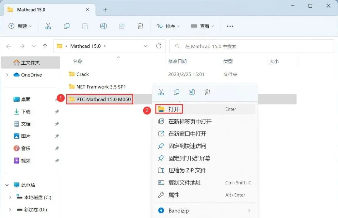 3、找到【PTC Mathcad 15.0 M050】文件夹,右键【打开】它