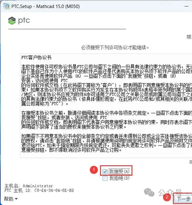 6、勾选【我接受】,点击【下一步】