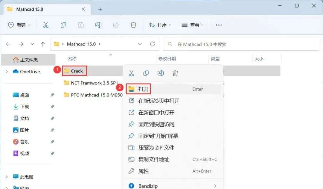 20、回到Mathcad 15.0文件夹,找到【Crack】文件夹,右键【打开】它