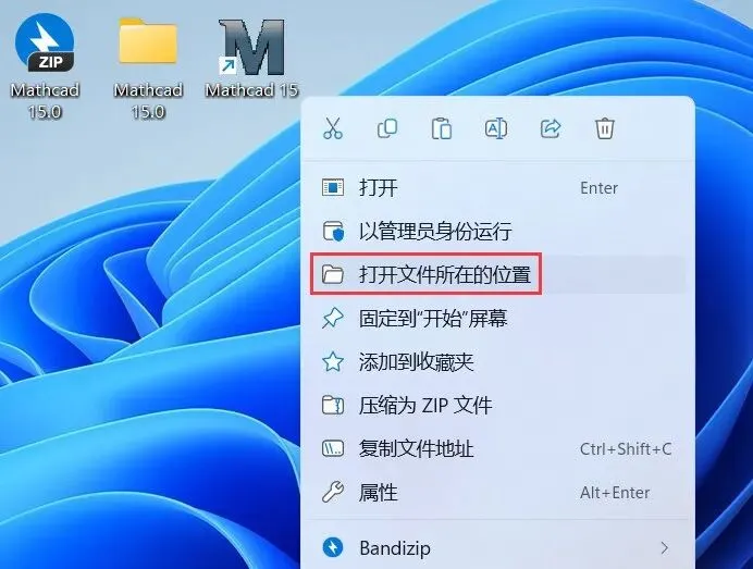 22、回到桌面,右键桌面上的【Mathcad 15.0软件图标】,点击【打开文件所在的位置】