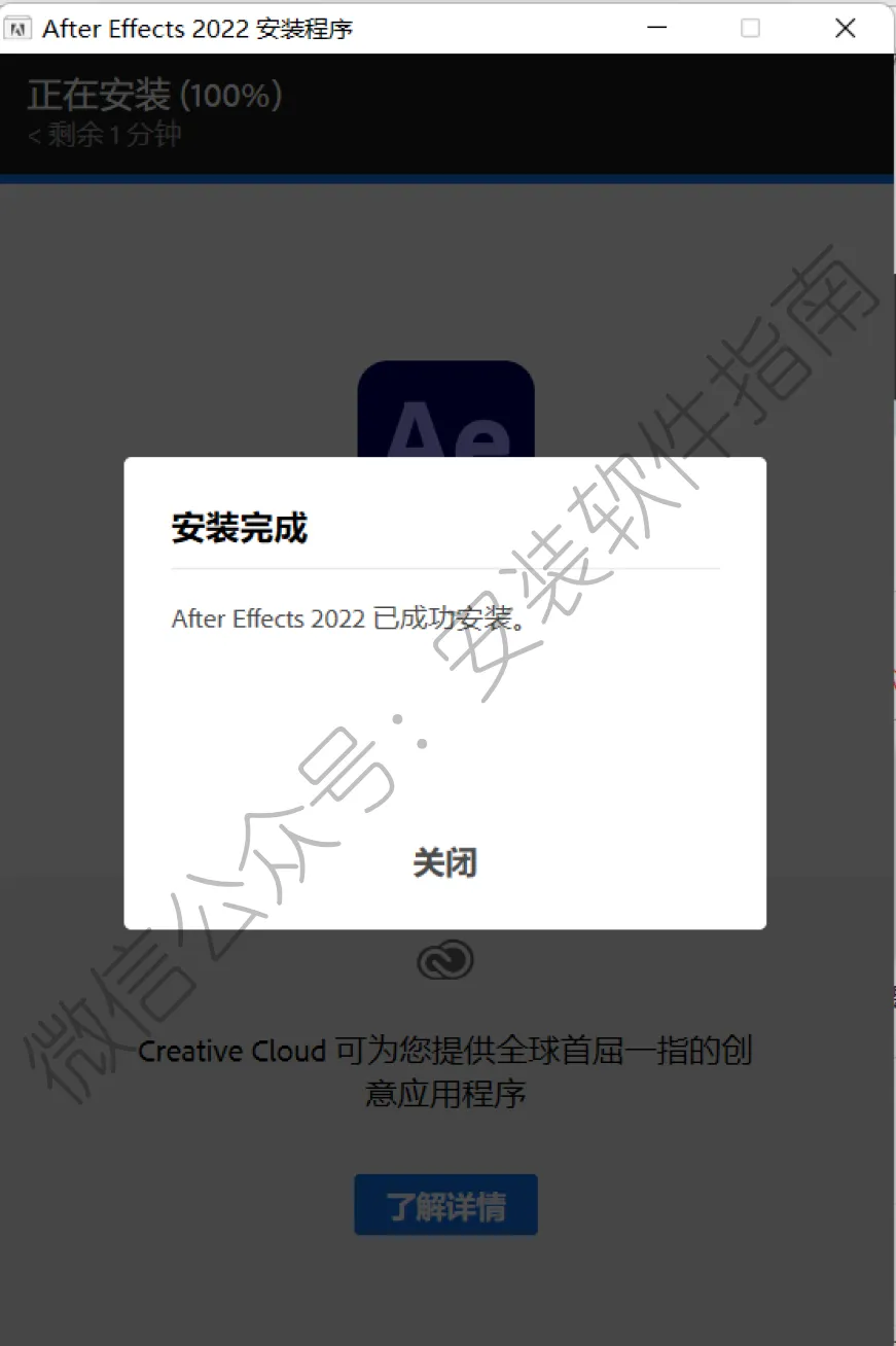 4、安装完成,点关闭