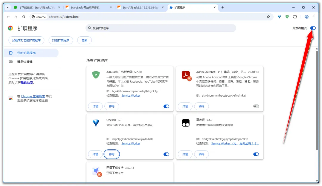 首先在浏览器的扩展管理页面,找到「开发者模式」并把它打开呀~🔓