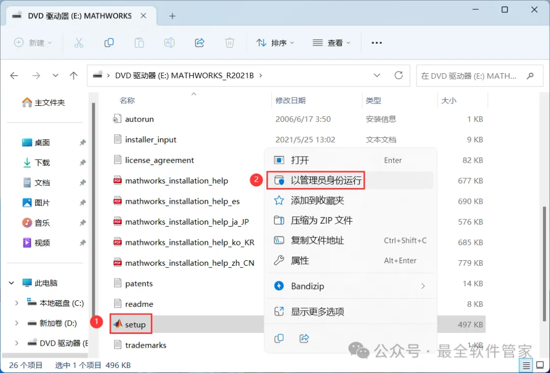 4、找到【setup】应用程序,右键选择【以管理员身份运行】它