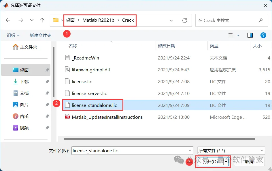 9、找到并选中安装包Crack文件夹下的【license_standalone.lic】,再点击【打开】