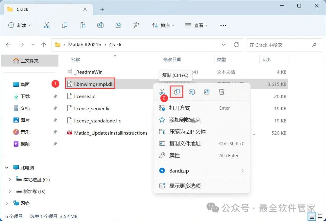 18、找到【libmwlmgrimol.dll】文件,右键点击【复制按钮】