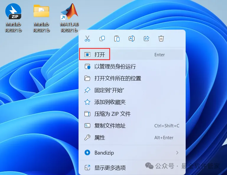 31、回到桌面,右键桌面上的【Matlab R2021b软件图标】,点击【打开】