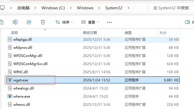 1 准备windows下的wget.exe,然后放到_“C:WindowsSystem32”_ 。