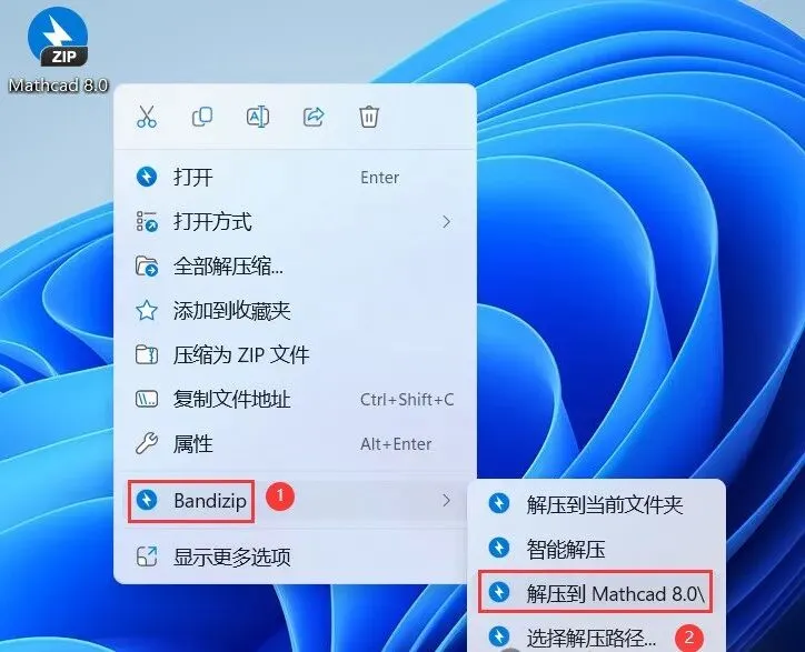 1、下载Mathcad 8.0软件安装包到电脑上,右键选择【解压到Mathcad 8.0\】