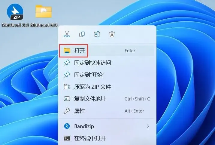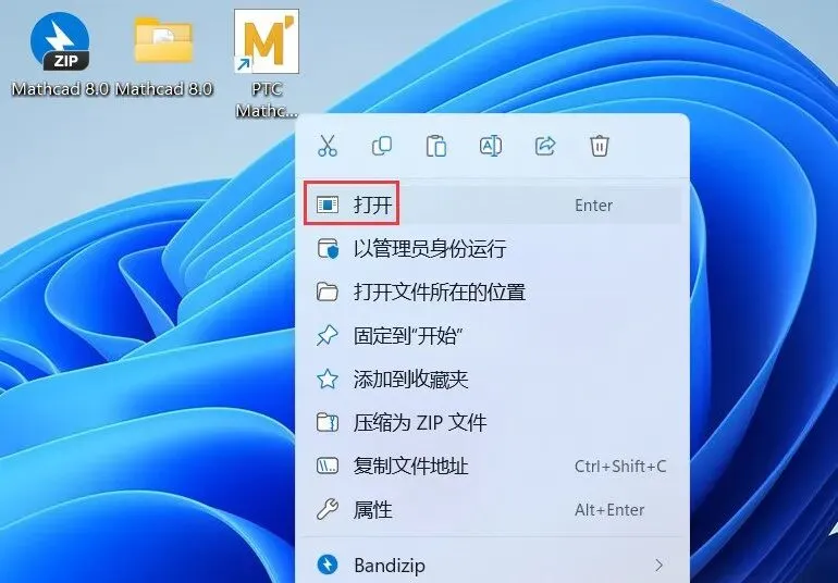 28、回到桌面,右键桌面上的【Mathcad 8.0软件图标】,点击【打开】