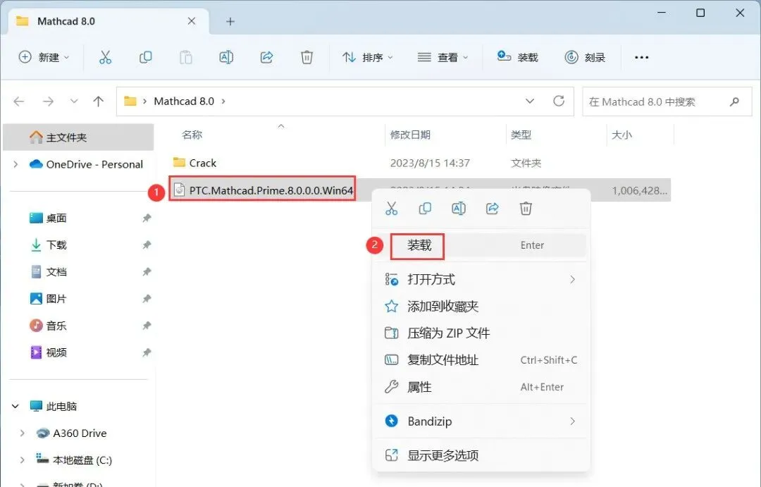 3、找到【PTC.Mathcad.Prime8.0】文件,右键点击【装载】