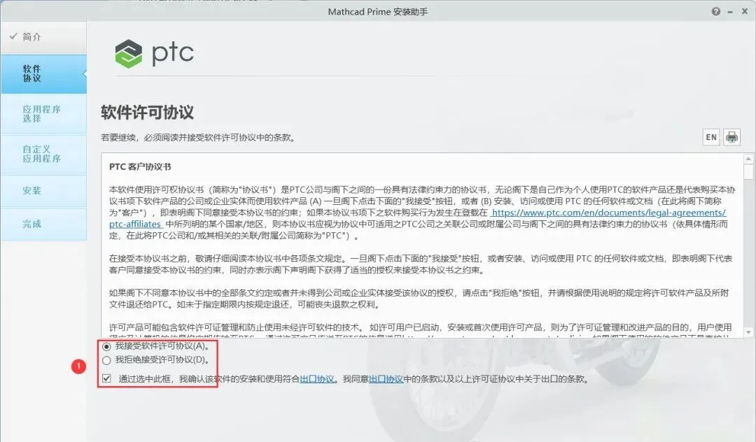 6、勾选【我接受】和【通过…】,再点击【下一步】