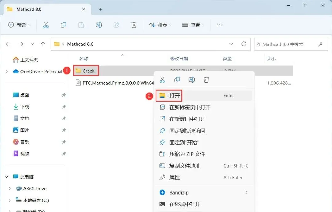 11、回到Mathcad 8.0文件夹,找到【Crack】文件夹,右键【打开】它