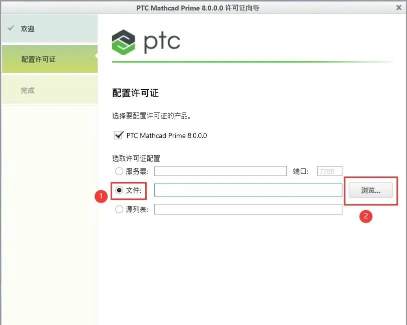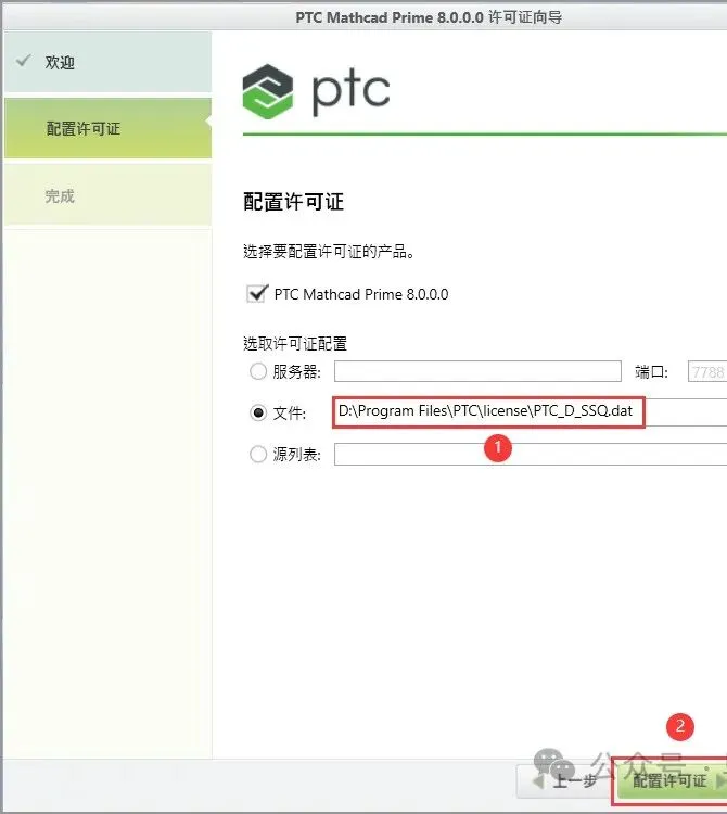 32、浏览路径为:D:\Program Files\PTC\ license\ PTC_D_SSQ.dat,再点击【配置许可证】