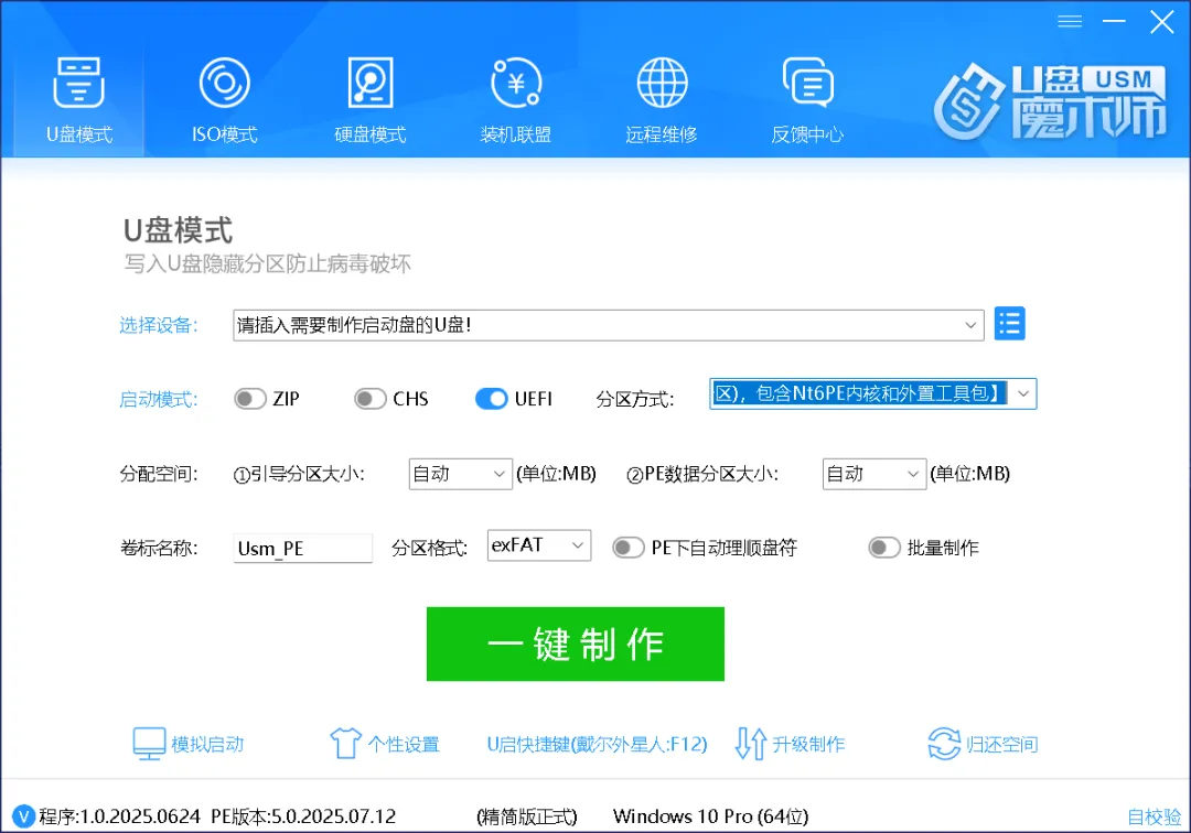 然后我们拿出自己准备的U盘,就可以制作系统U盘啦! |