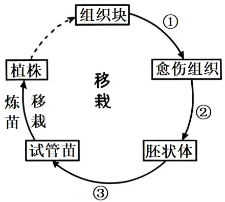 4.图示一种植物组织培养周期,①~③表示相应过程。下列相关叙述错误的是()