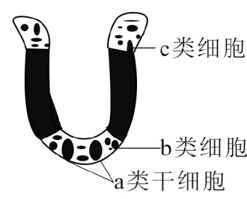 9.图示小肠上皮组织,a~c表示3类不同功能的细胞。下列相关叙述错误的是()