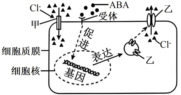 16.研究小组开展了Cl-胁迫下,添加脱落酸(ABA)对植物根系应激反应的实验,机理如图所示。下列相关叙述错误的有()