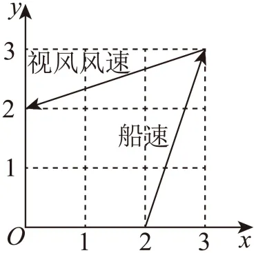 写出视风风速对应的向量和船行风速对应的向量,求出真风风速对应的向量,得出真风风速的大小,即可由图
