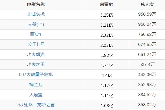 票房没有十亿根本上不了榜啊。第一名的《战狼2》更是达到了变态的 56.38 亿。。按照平均票价35元来计算,观影人次达到了 1.6 亿!