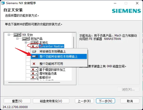 18.依次点击下图本地化下方-前方有红色“X”图标的项目,选择【整个功能安装在本地磁盘上】。