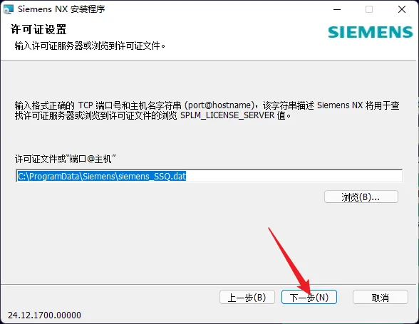 22.输入”端口@主机“【C:\ProgramData\Siemens\siemens_SSQ.dat】,点击【下一步】。