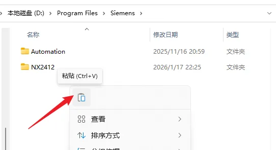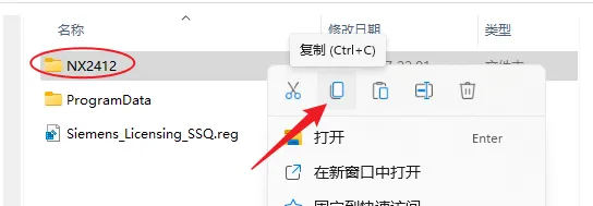 29.鼠标右击【NX2412】文件夹选择【复制】。