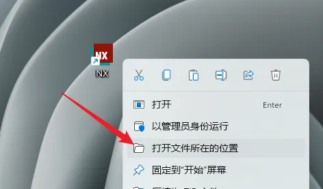 31.鼠标右击桌面【NX】图标选择【打开文件所在的位置】。