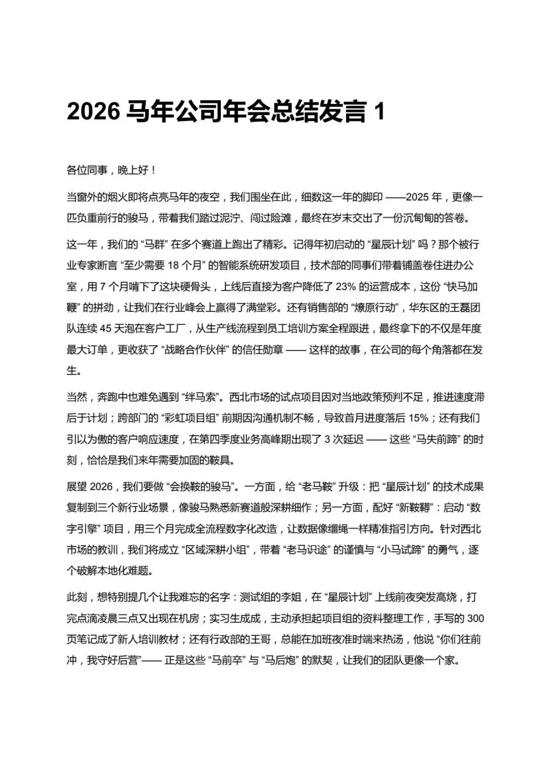 Hi~小伙伴们好,本期小编给大家推荐一期【2026马年主持人词稿】模板,希望大家能喜欢