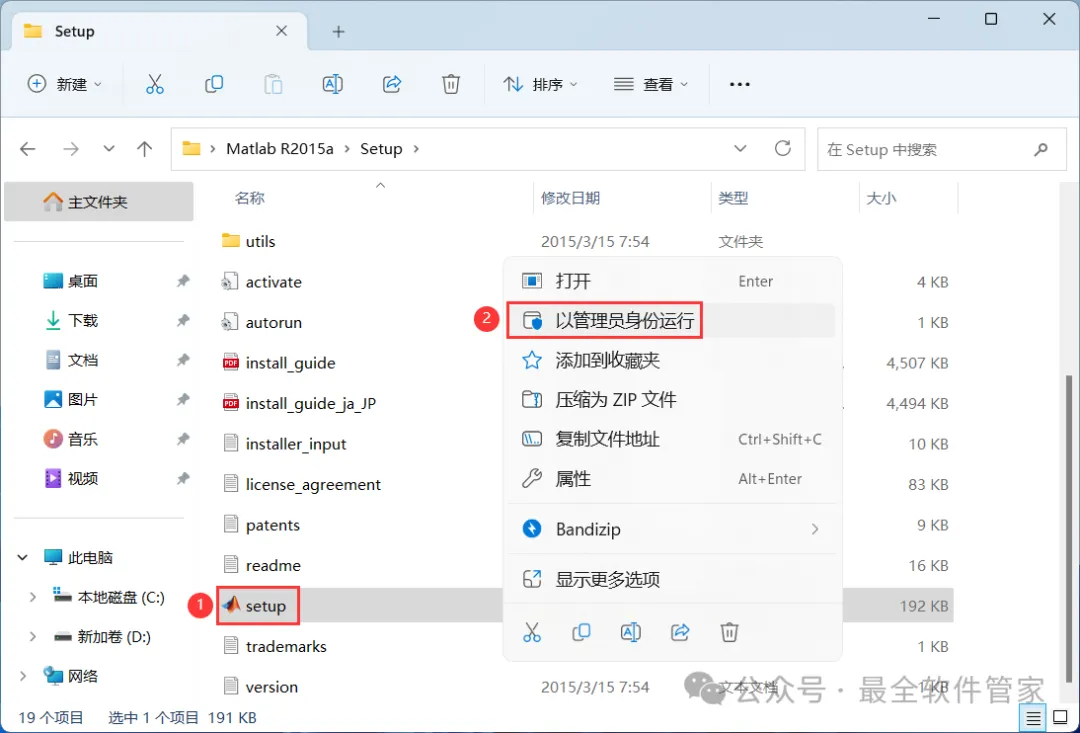4、找到【setup】应用程序,右键选择【以管理员身份运行】它