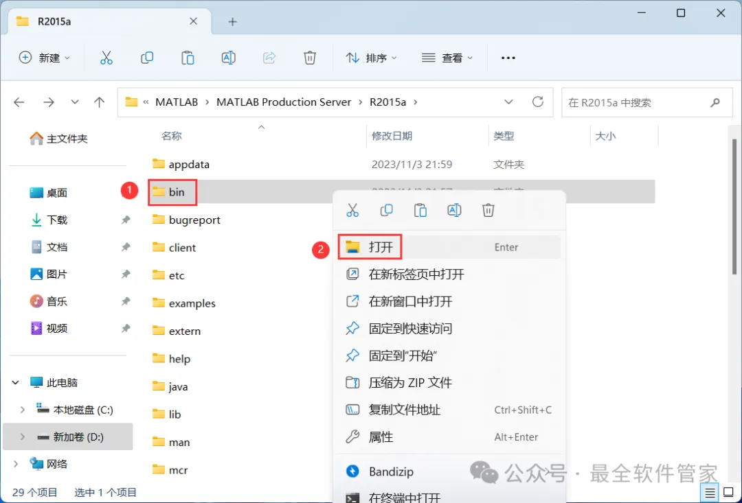 18、找到【bin】文件夹,右键【打开】它