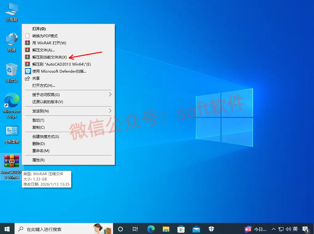 1,右键解压安装包至当前文件夹注意,解压之前先关闭杀毒软件和window安全中心,避免注册机被删除。