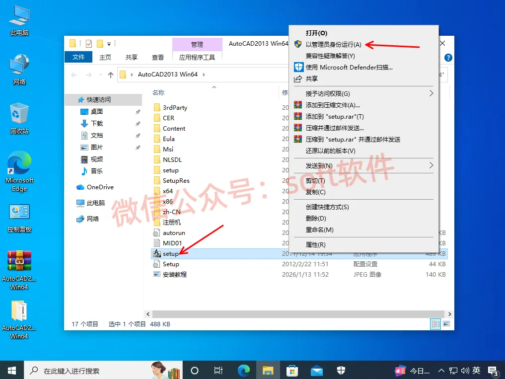 2,进入解压生成的文件夹里面,右键以管理员身份运行Setup安装程序