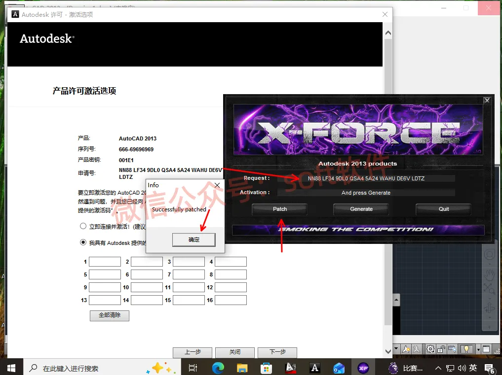 15,将申请号按Ctrl+C复制,然后按Ctrl+V粘贴到Request里面。点击Patch,提示成功弹窗点击确定