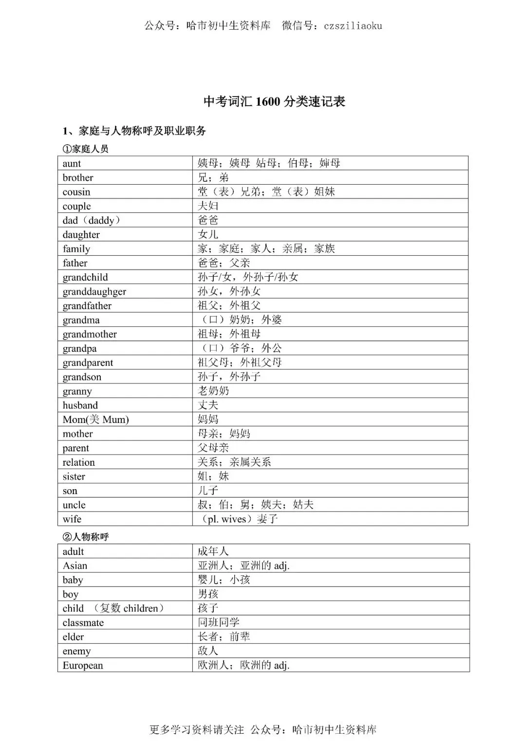 新课标英语·中考1600词分类速记(免费下载)
