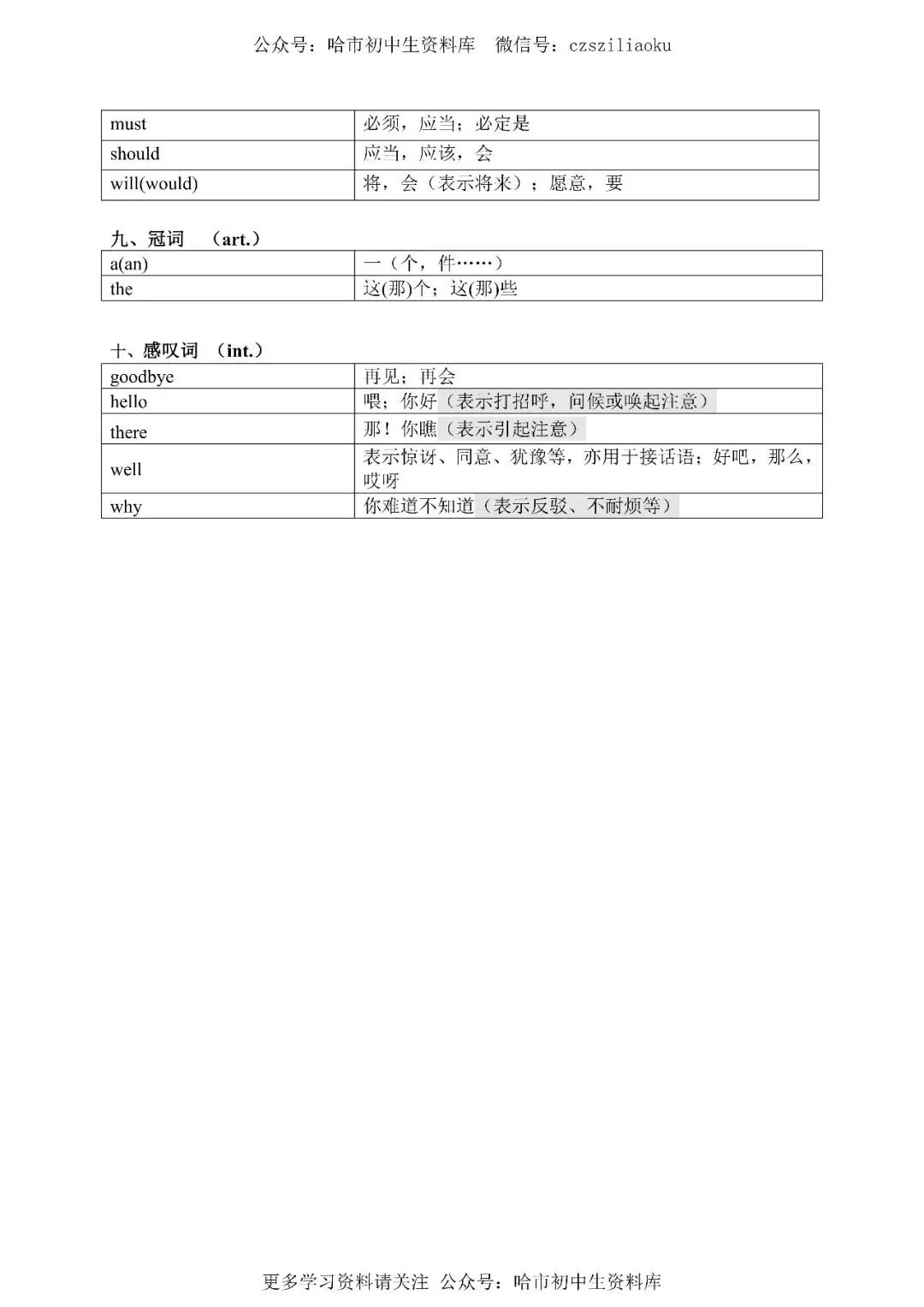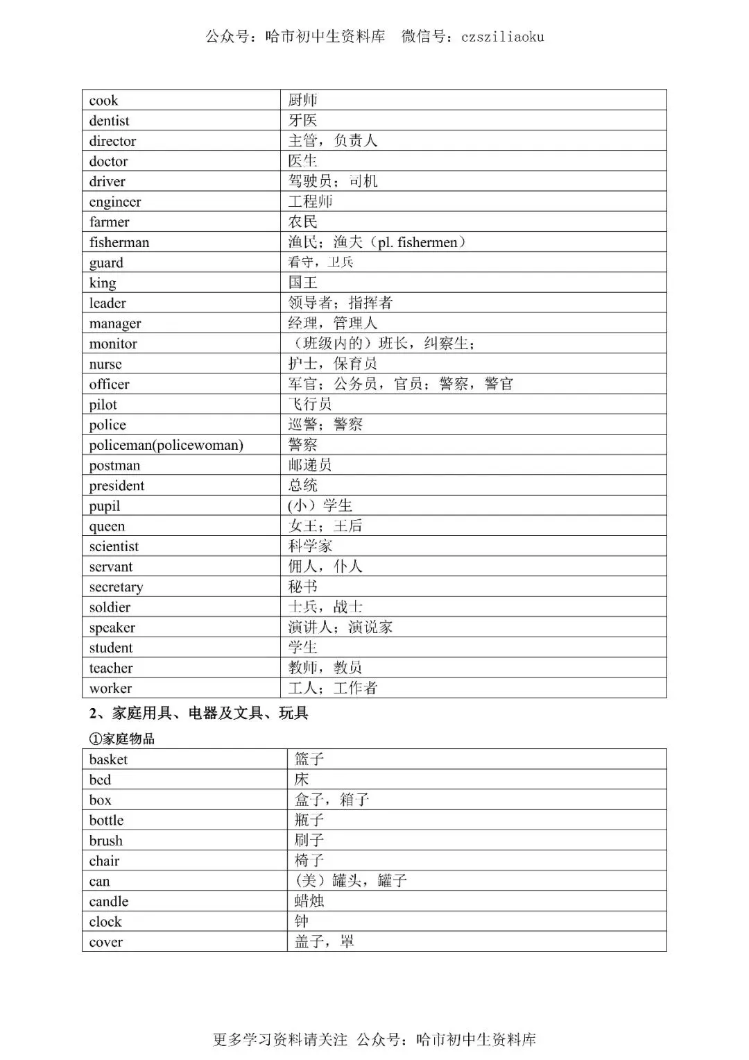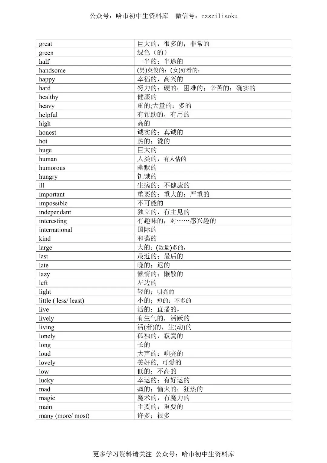 公众号:哈市初中生资料库