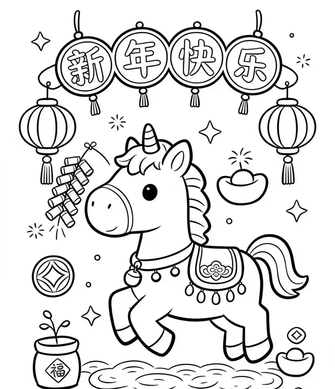 【新】马年简笔画涂色线稿模板纸(免费下载,可打印)