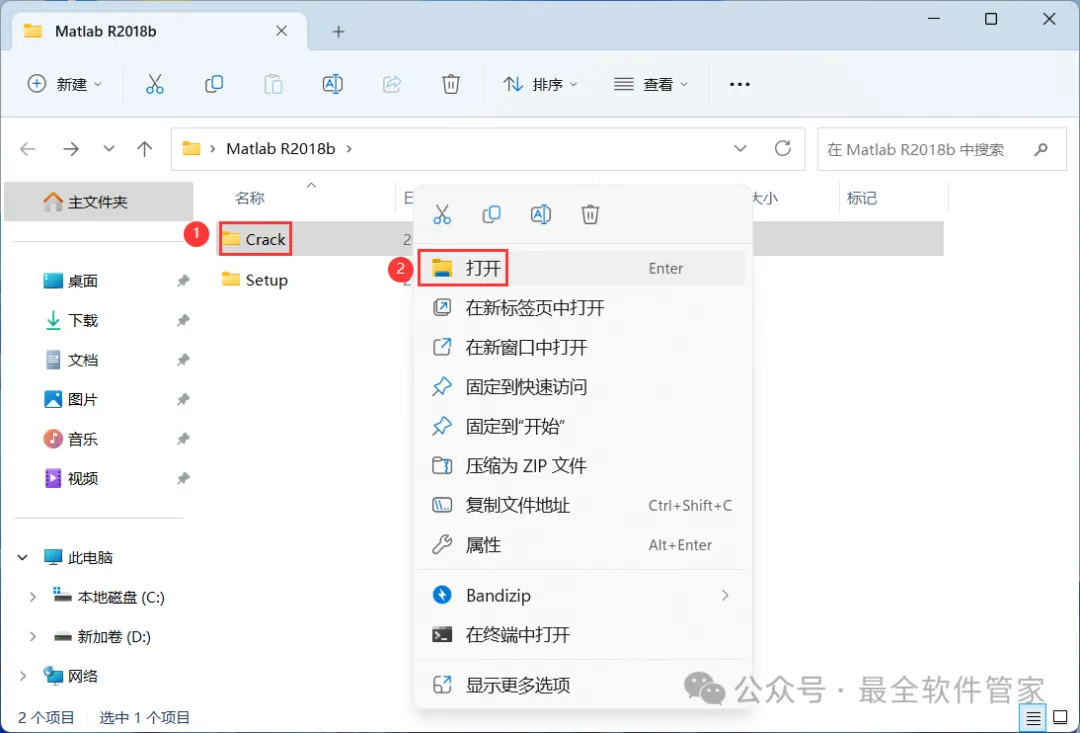15、回到Matlab R2018b文件夹,找到【Crack】文件夹,右键【打开】它